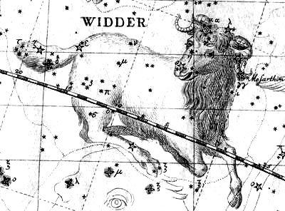 The constellation Aries is the symbol of Spring. This is because in the past it contained the so called Gamma Point, that is, the point where the ecliptic plane intersects the celestial equatorial plane, showing the position of the Sun during the Spring equinox. Today, however, due to the precession of the equinoxes, the point of intersection is now found in the constellation of Pisces. The best time to see Aries is when it is opposite the Sun, between late autumn and the beginning of winter when it is visible throughout the night, half-way between Taurus and Andromeda.