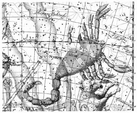 Le Scorpion représenté dans l'oeuvre Uranographia de Johan Bode.